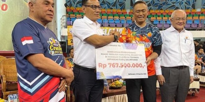 Bantuan yang diberikan oleh PT Bayan Resources tbk berupa dana pembangunan sebesar Rp767.500.000 dan diterima langsung Kepala DLH Balikpapan Sudirman Djayaleksana saat pembukaan kejuaraan Bayan 300 tahun 2023 di BSCC Dome Balikpapan, Rabu (9/8/2023).