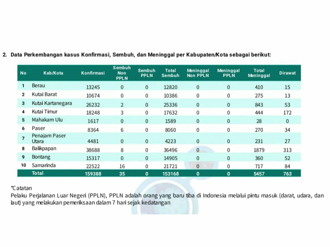 Adapun Kabupaten Penajam Paser Utara yang merupakan bagian dari Ibu Kota Negara Nusantara, jumlah kasus aktif covid-19 saat ini sebanyak 27 orang. Kota Bontang juga cukup tinggi sebanyak 52 kasus aktif saat ini.