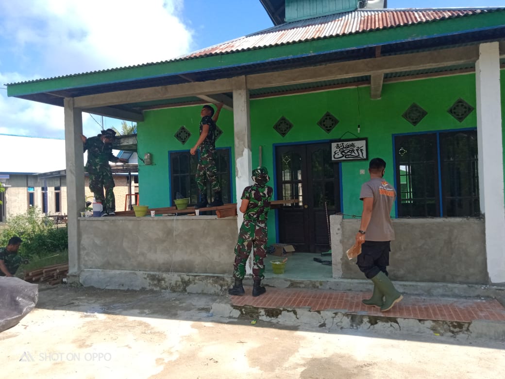 TANJUNG SELOR, Inibalikpapan.com – Sebagai bentuk kepedulian dengan sarana rumah ibadah, satuan tugas (Satgas) TMMD ke 110 Tahun 2021 Kodim 0903/Tsr melakukan pekerjaan finishing yaitu plamir dan pengecetan Pagar Musholla Al Amin bertempat di Desa Gunung Putih Kecamatan Tanjung Palas, Kabupaten Bulungan, Jumat (5/3/2021).