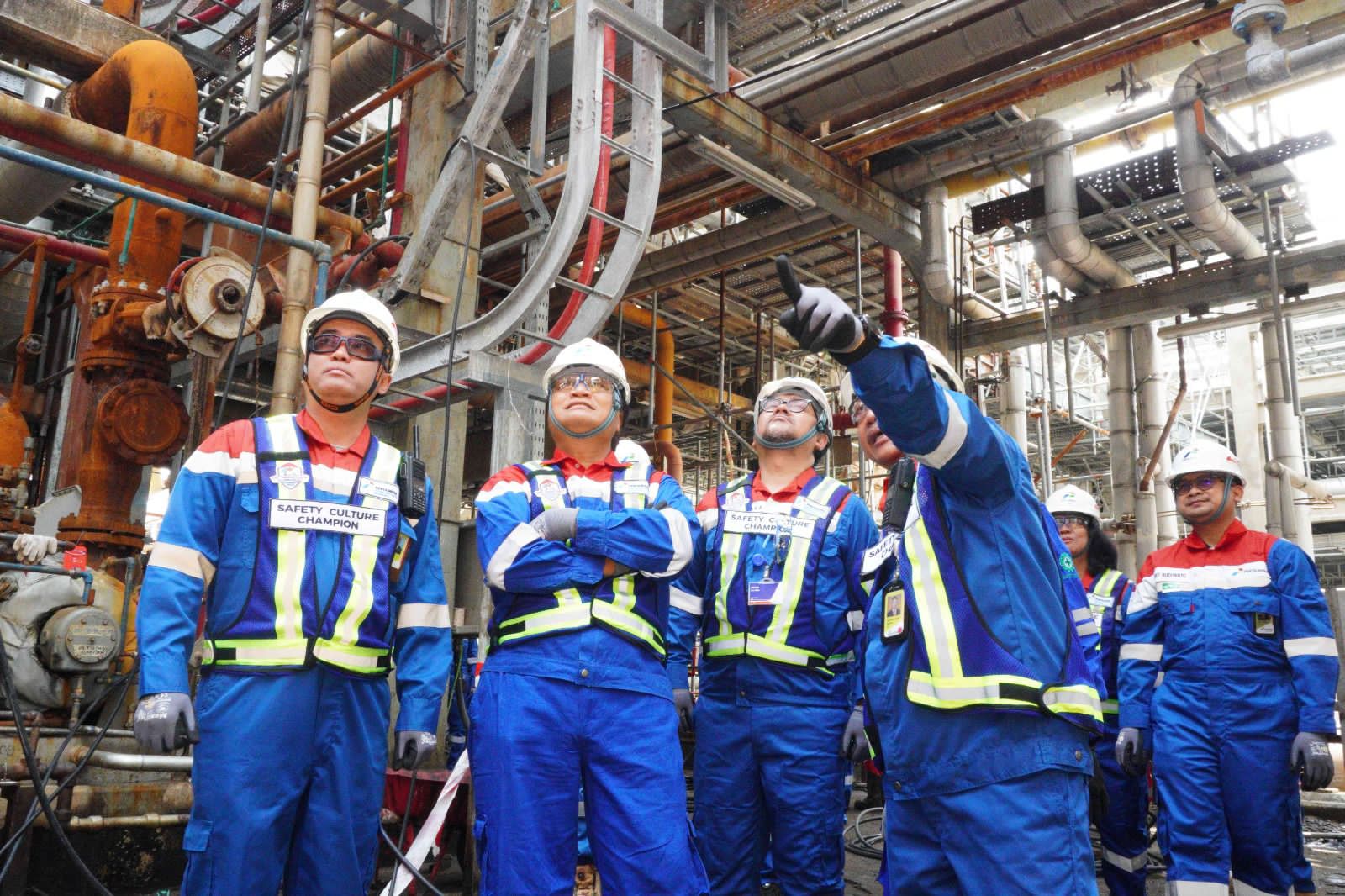 Rombongan memulai kunjungan dengan menginspeksi Kilang Balikpapan, melihat pengukuran BRIN di CDU-IV dan Kerosene Treater.