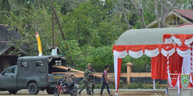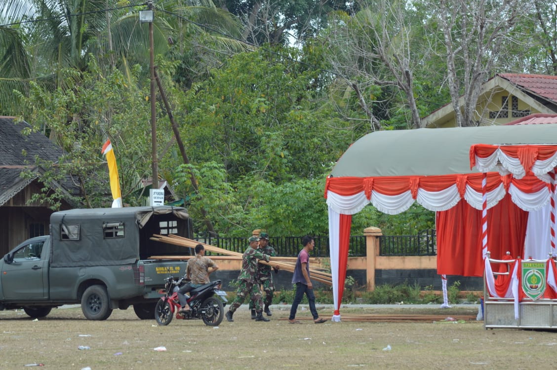 Terlihat sejumlah TNI bersama Masyarakat dan Intansi terkait ikut dalam persiapan penutupan program TMMD ke-106 tersebut, mulai dari mempersiapkan baliho,pembersihan lapangan hingaga persiapan sarana tempat untuk tamu undangan.