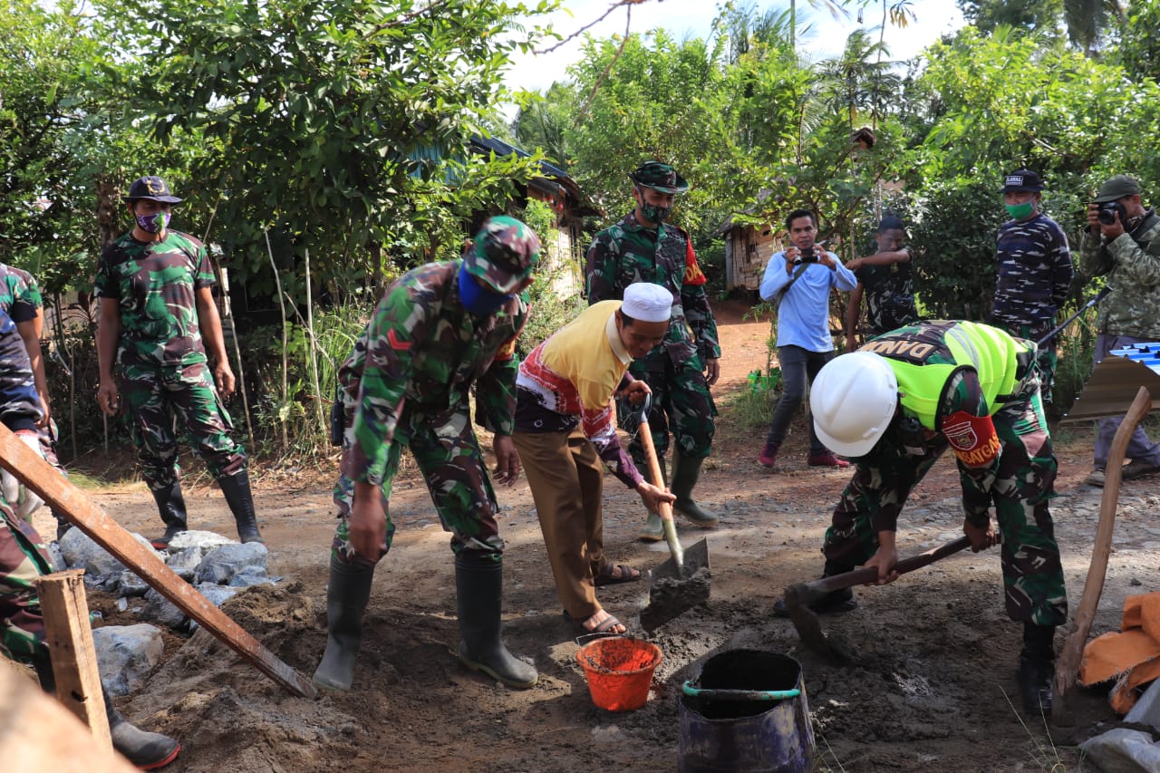 Sejak dimulainya pelaksanaan TMMD,Ddngan sigap, pasukan satgas dan warga telah membuat pondasi, pasang tiang dan batako.