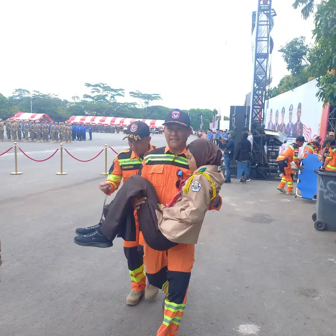 BALIKPAPAN,Inibalikpapan.com – Diduga akibat kelelahan sejumlah peserta dari barisan pramuka mendadak jatuh pingsan. Mereka terpaksa harus dievakuasi oleh tim medis saat berlangsungnya upacara peringatan HUT ke-79 RI di Kota Balikpapan, di halaman BSCC Dome, Sabtu (17/8/2024).
