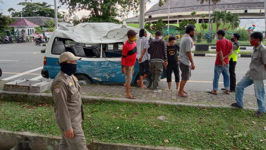 BALIKPAPAN, Inibalikpapan.com — Sekitar pukul 10.15 wita terjadi kecelakaan tunggal yang dialami kendaraan angkutan kota KT 1430 YU terbalik di sekitar Lapangan Merdeka depan Banua Patra jalan Jenderal Sudiriman, Balikpapan, Rabu (30/12/2020).