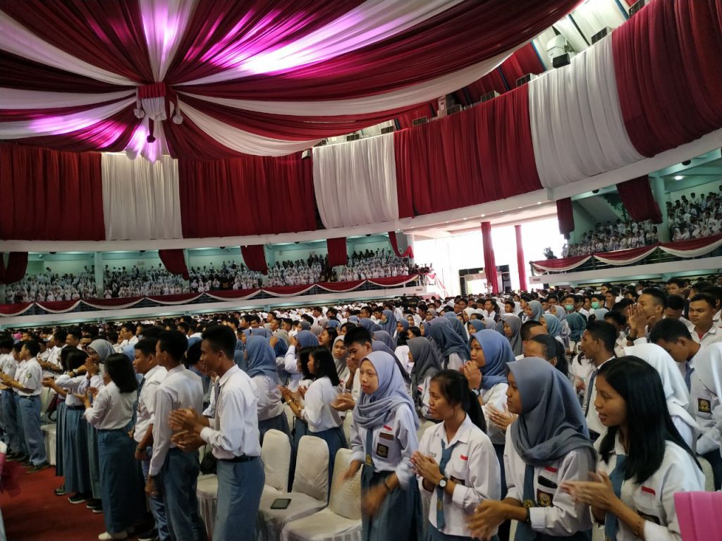 Tri Suswati Tito dan rombongan disambut dengan ikrar pelajar anti narkoba, anti kekerasan dan anti hoax yang diikuti oleh ribuan pelajar se Kalimantan Timur. gedung Dome Balikpapan dipenuhi oleh pelajar baik dilantai bawah maupun lantai atas.