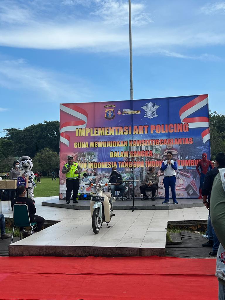 Melalui kegiatan ini pihaknya mengajak agar ada kepedulian karena ini untuk menciptakan tertib berlalu lintas secara permanen, sehingga pagi hari ini Direktorat Lalulintas mengadakan binluh dengan cara art policing yang artinya mengkolaborasi kebudayaan lokal.