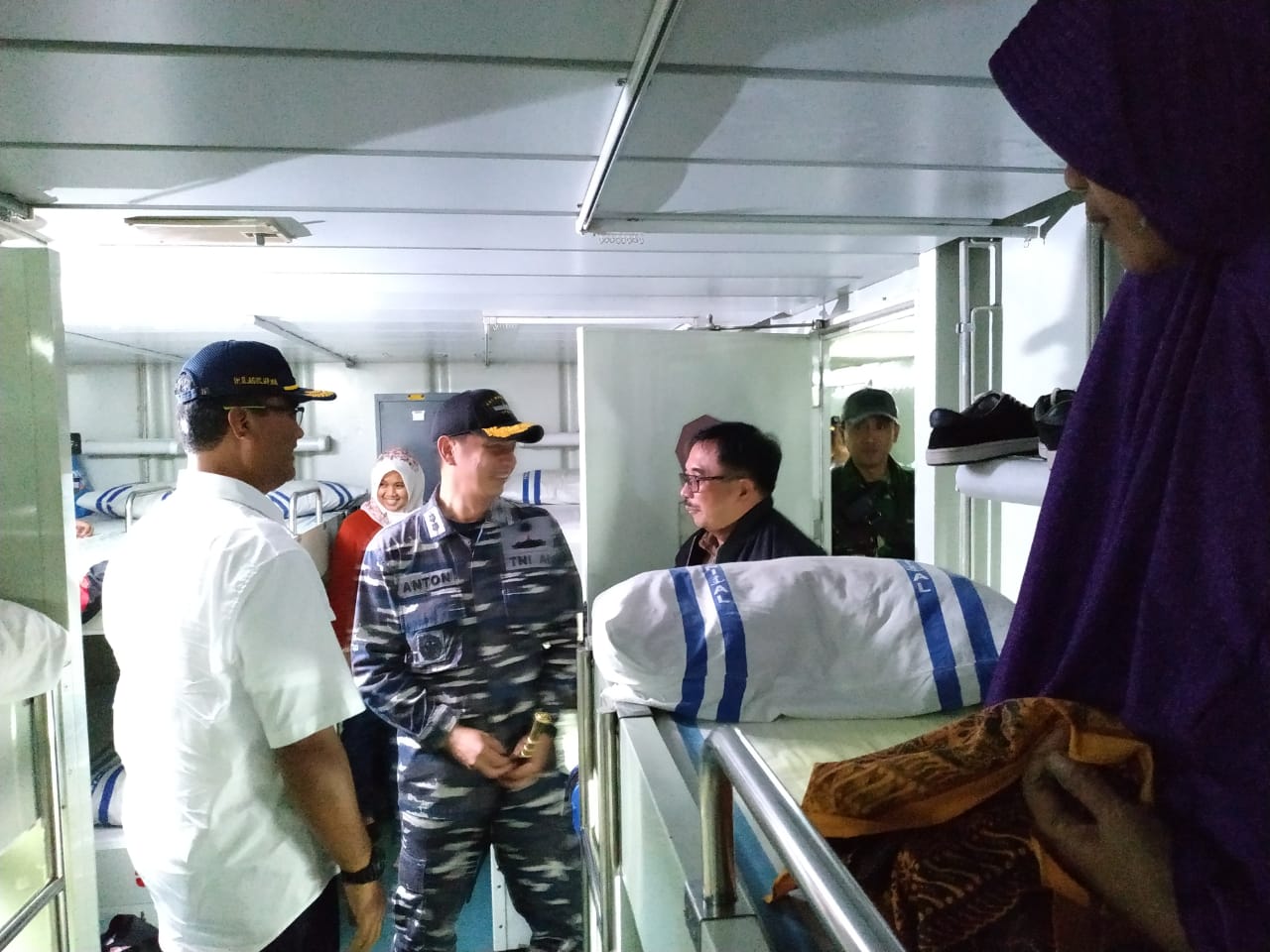 “Kami minta dua, disini satu dan di Lampung satu Tanjung Priok ke Panjang. Kapalnya anda lihat sendiri bagus sekali bahkan menurut perhitungan saya dimuat seribu masih nyaman banget. Kami ingin mendukung bahwa masyarakat yang akan lebaran bisa melakukan dengan sebaik-baiknya,” katanya usai melakukan pemeriksaan kapal perang Makasar.