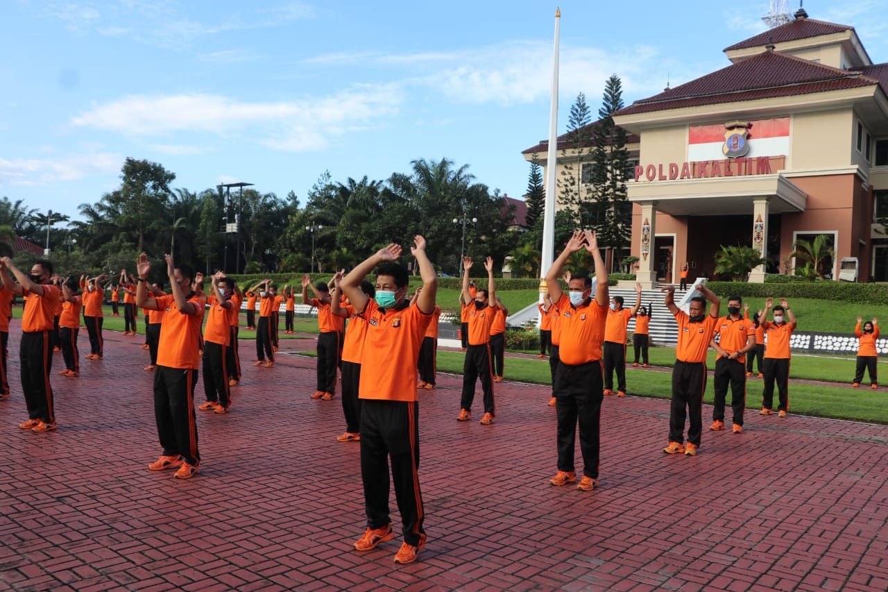 Kabid Humas Polda kaltim Kombes Pol Ade Yaya Suryana, S.I.K., M.H., menjelaskan bahwa Polda Kaltim rutin laksanakan giat senam AW S3 pasca penetapan Ops Aman Nusa II.