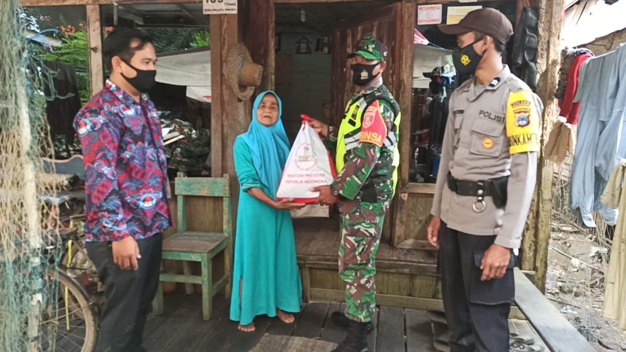 Sebanyak 1000 Paket sembako yang masing-masing berisikan seperti, beras 5 kg, gula 1 kg,teh 1 kotak,minyak 1 liter dan maskerAdapun pendistribusian di lakukan secara langsung oleh Babinsa,Babinkamtibmas dan perangkat desa dengan cara door to door kepada warga yang terdampak musibah banjir.