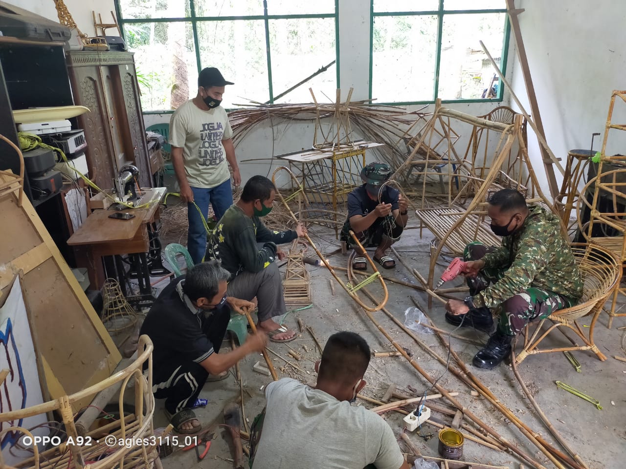 TANJUNG TABALONG, Inibalikpapan.com— Guna mendorong Pemerintah Daerah Kabupaten Tabalong untuk mendukung pelaku usaha kecil masyarakat Desa Lok Batu, Anggota Satgas TMMD 110 Kodim 1008 Tanjugn, Serma Silalahi aktif melakukan komunikasi Sosial dengan mendatangi kelompok kerajinan anyaman tangan dari Rotan di Desa Lok Batu, Sabtu (20/3/21).