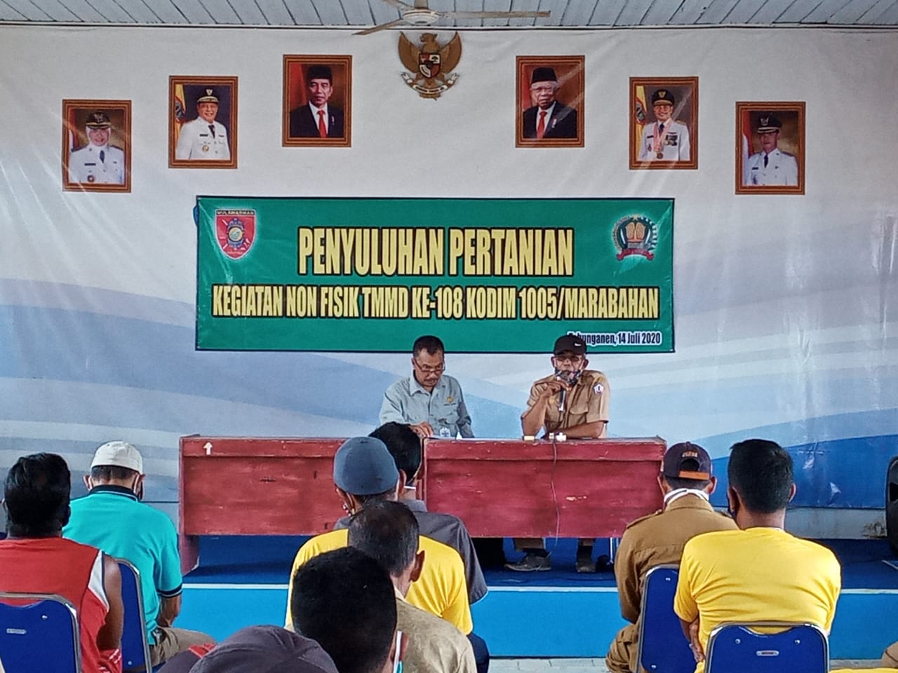 Marabahan, Inibalikpapan.com – Satuan tugas TNI Manunggal Masuk Desa (TMMD) ke-108 Kodim 1005/Marabahan menggelar kegiatan non fisik berupa penyuluhan pertanian dan perkebunan kepada masyarakat di Desa Sungai Telan Besar kecamatan Tabunganen kabupaten Barito Kuala, Rabu (15/07/2020).