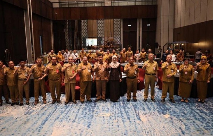 Tampak hadir, Sekdakot Samarinda Hero Mardanus, Sekdakot Balikpapan Muhaimin, Sekdakab Mahulu Stephanus Madang, Sekdakab Kutai Barat Ayonius, Pj Sekdakab Berau Agus Wahyudi dan Karo Ortal Setda Provinsi Kaltim Iwan Setiawan. (adpimprovkaltim)