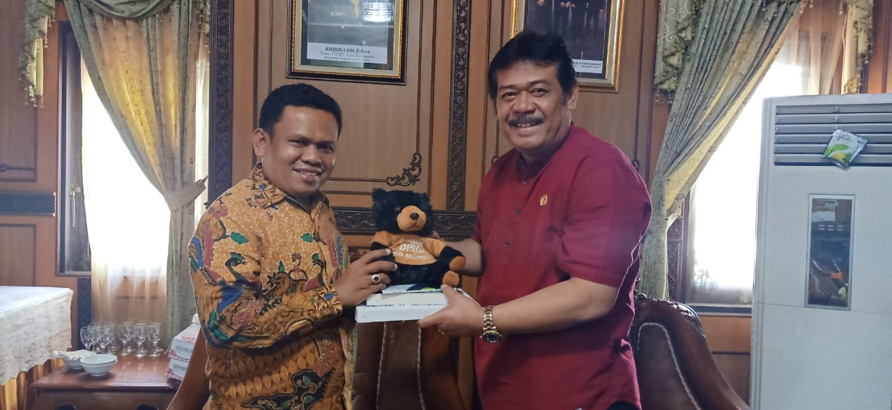 Hasanuddin bersama dua staf diterima Ketua DPRD Abdulloh di ruang kerja. Ketua DPRD didampingi anggota DPRD Aminuddin dan Eko Danang.