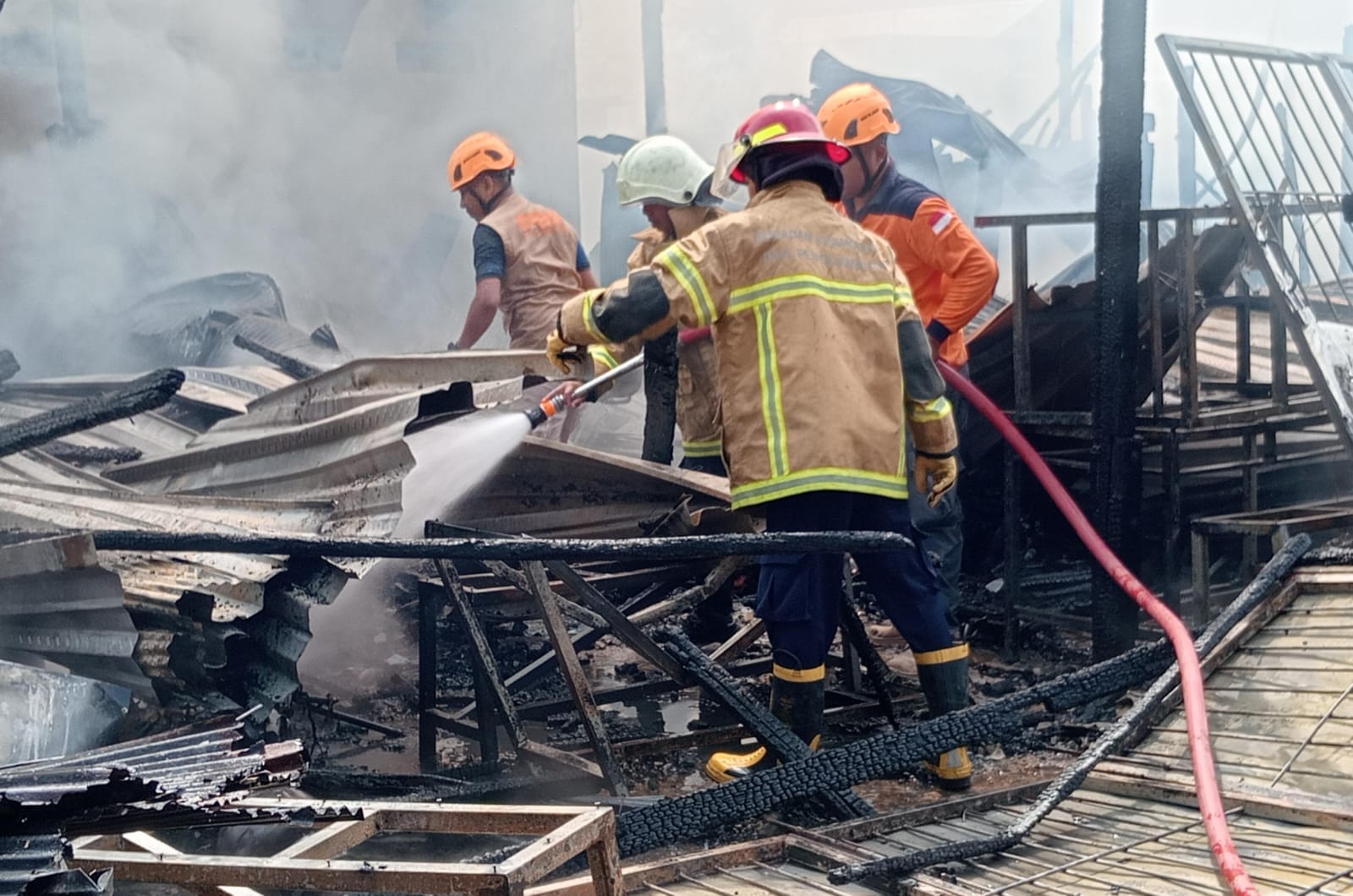 “Dua bangunan yang terbakar dimana dalam bangunan ini ada petak-petak, warung kopi, warung makan dan bengkel,” ujarnya kepada awak media.