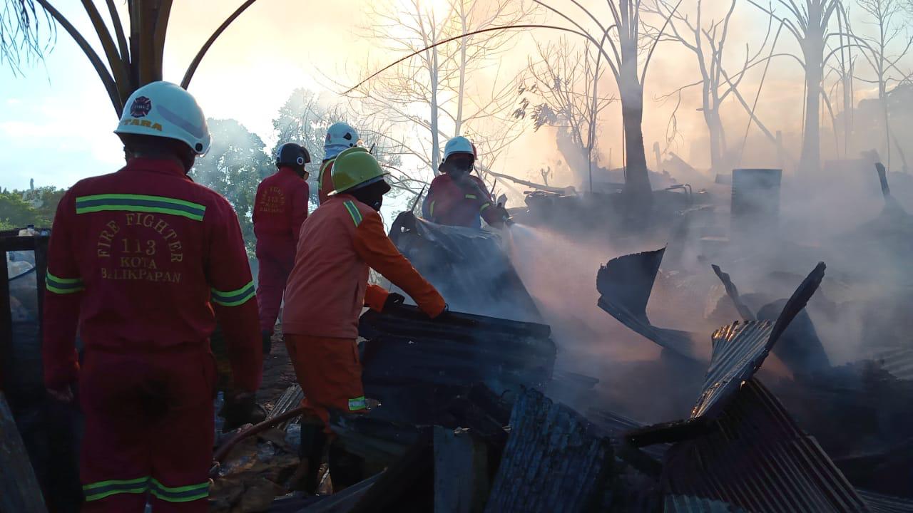 BALIKPAPAN, Inibalikpapan.com — Petugas pemadam kebakaran Balikpapan kewalahan memadamkan api yang melahap dua bangunan semi permanen di Gang Mutiara 2 Jalan MT Haryono Rt 67 No 50, Balikpapan Utara, Jumat sore, pukul 61.30 wita.