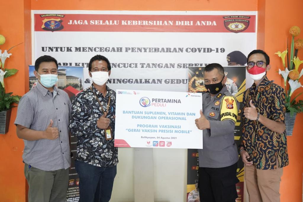 BALIKPAPAN, Inibalikpapan.com – Sebegai bentuk dukungan terhadap percepatan vaksinasi, PT Pertamina (Persero) Marketing Operation Regional (MOR) Kalimantan juga ikut membantu operasional, suplemen maupun vitamin dalam vaksinasi yang digelar TNI dan Polri.