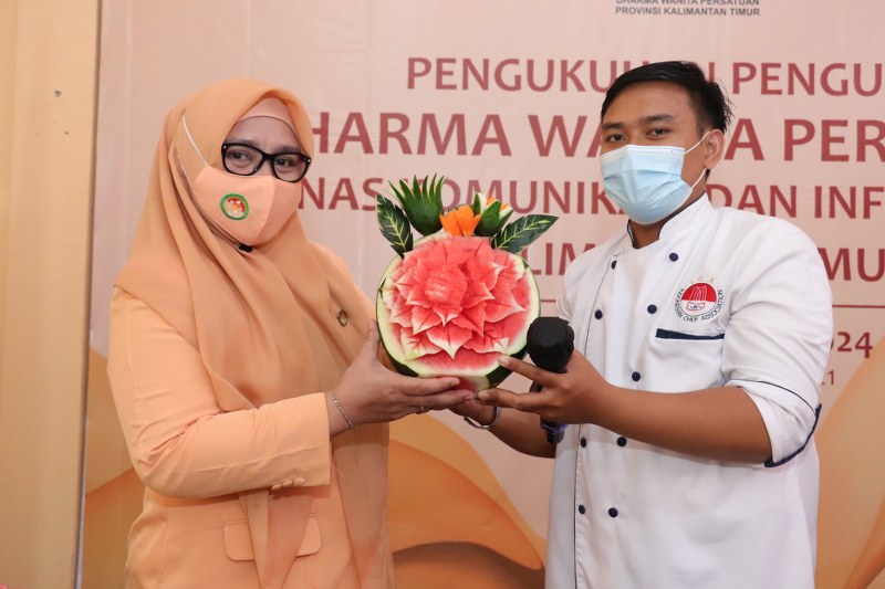 SAMARINDA, Inibalikpapan.com —Kepengurusan Dharma Wanita Persatuan Diskominfo Kaltim Senin pagi (15/3) di Aula Diskominfo menggelar Pelatihan Mengukir Buah dan Sayuran oleh Komunitas Fruitcarving Samarinda yang langsung disampaikan oleh Ketuanya Taufik Ramadhan.