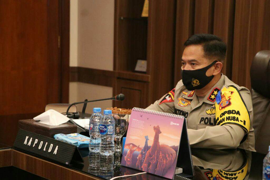 Polda Kalimantan Timur dipimpin Kapolda Kaltim Irjen Pol. Drs. Muktiono, S.H., M.H., dan Irwasda Polda Kaltim Kombes Pol Edhy Moestofa, M.Hum., mengikuti Anev Perkembangan pandemi Covid-19 terhadap keamanan, ketertiban di kaltim dan kebijakan adaptasi kebiasaan baru, bertempat di Ruang Ruang Vicon Polda Kaltim, Rabu (29j/07/2020).