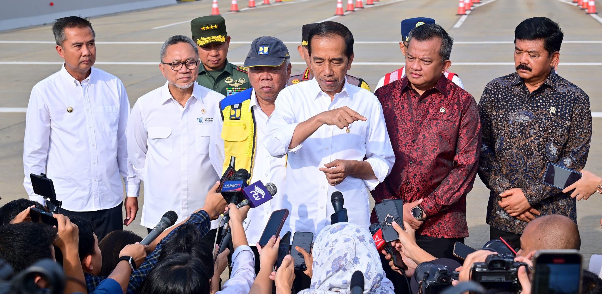 Presiden menyampaikan itu usai meresmikan Jalan Tol Pamulang-Cinere-Raya Bogor di Gerbang Tol Limo Utama, Kota Depok, Provinsi Jawa Barat, pada Senin, 8 Januari 2024.