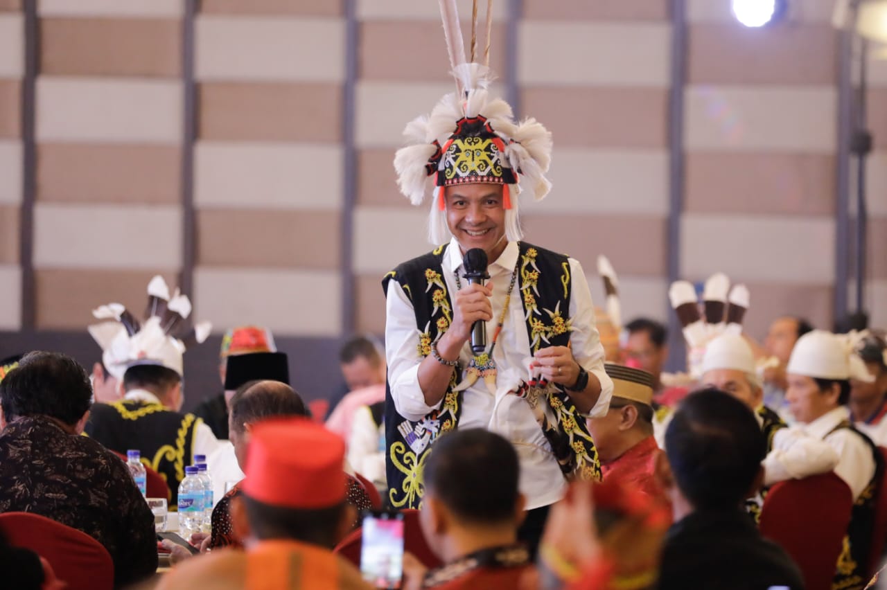 Hal itu berlangsung saat Ganjar menghadiri acara ramah tamah dengan tokoh adat, tokoh masyarakat dan tokoh lintas agama yang ada di Swiss-Bell Hotel, Balikpapan, Selasa (5/12/2023).