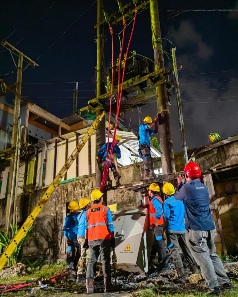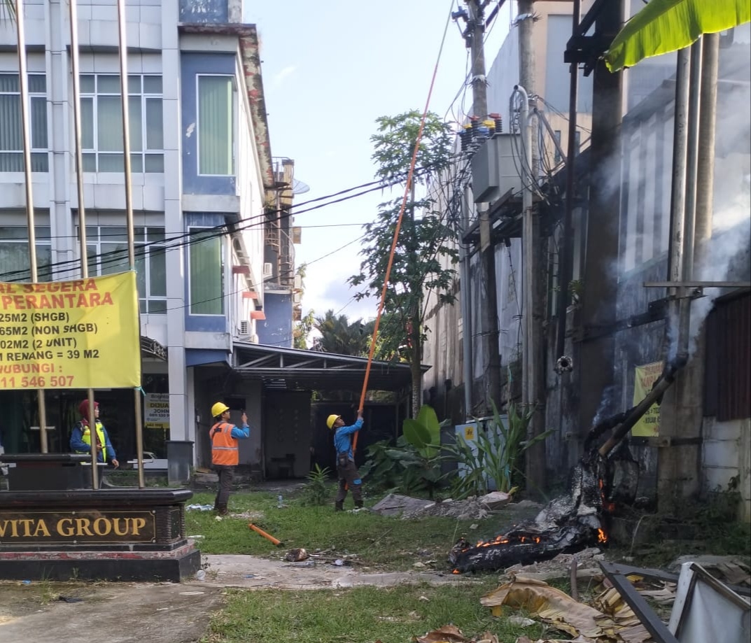 Selain itu petugas PLN juga dengan cepat melakukan penanganan gardu listrik yang terbakar, agar pelayanan listrik tidak terganggu. Hingga malam, petugas PLN segera melakukan pergantian dan penyambungan aliran listrik.