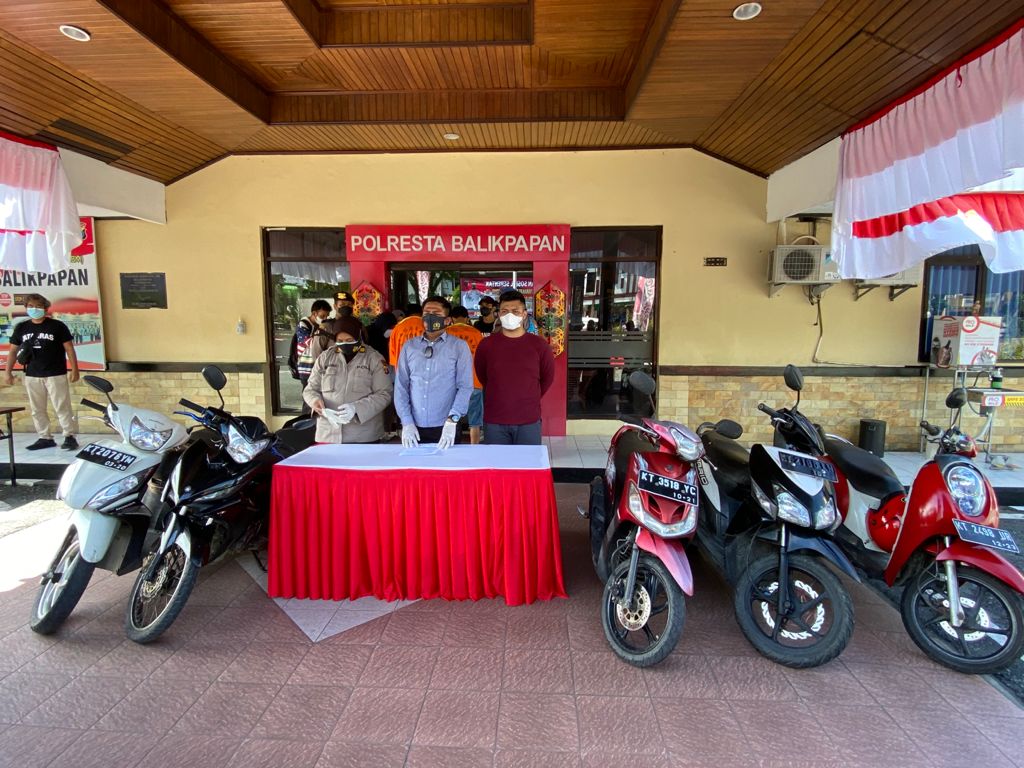 Lima motor yang diamankan sebagai barang bukti yakni Spesi putih, Mio Merah, MX Hitam, Scopy Merah dan Vario Hitam. Motor-motor itu dicuri di tiga lokasi yakni Balikpapan Barat, Utara dan Tengah.