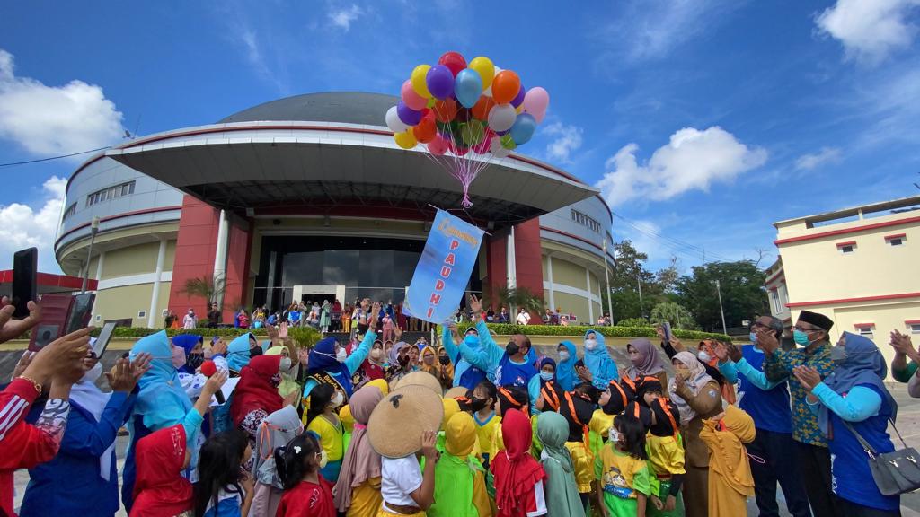 Salah satunya dengan melaksanakan kegiatan Gebyar PAUD serta launching PAUDHI dengan tema mendukung komitmen bersama PAUD satu tahun pra sekolah dasar untuk mewujudkan PAUD Berkualitas yang dilaksanakan di Balikpapan Sport and Covention Center (BSCC) Dome, Senin (6/6/2022).