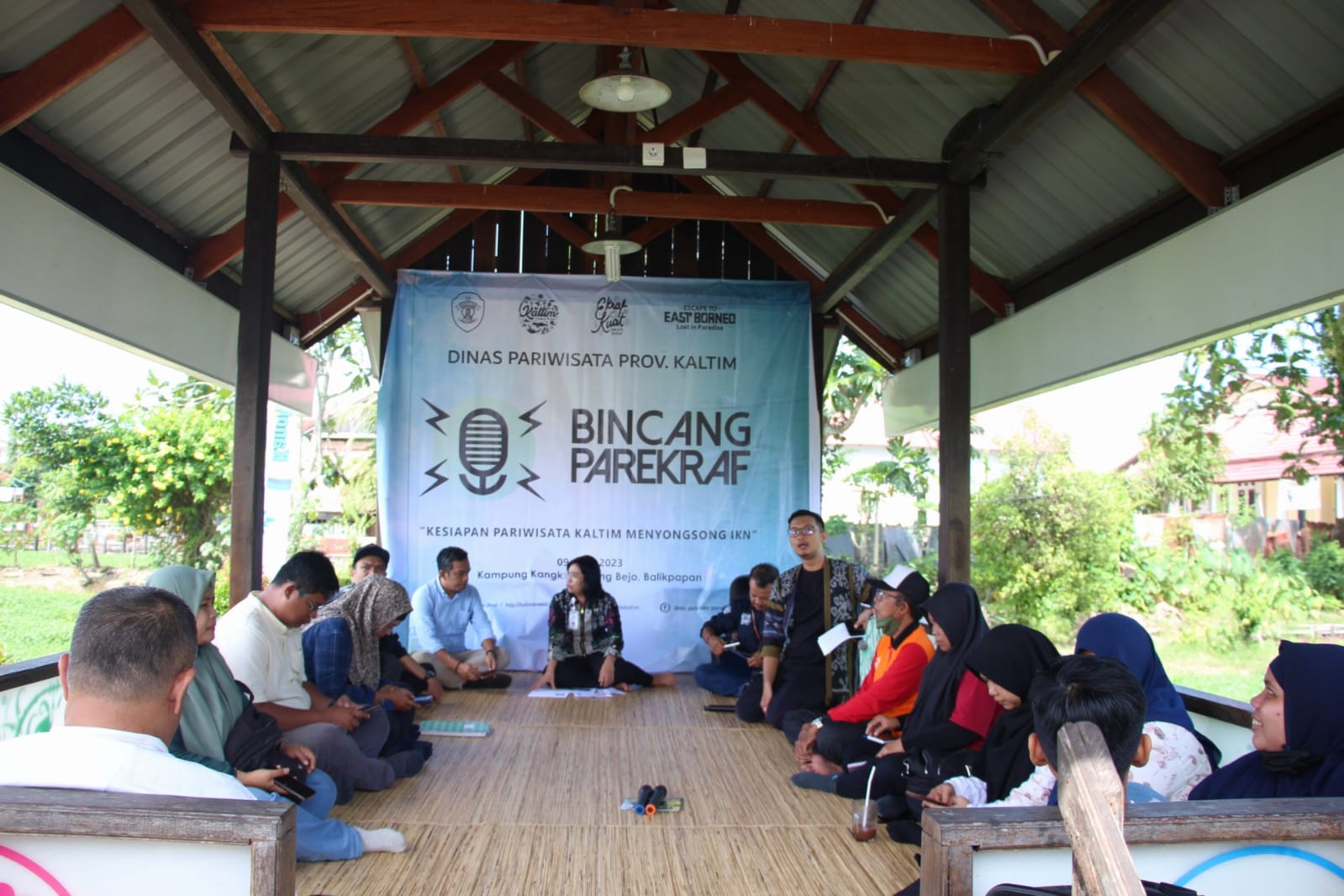 BALIKPAPAN, Inibalikpapan.com – Dinas Pariwisata Kalimantan Timur (Kaltim) menginisiasi Bincang Parekraf dengan tema Kesiapan Pariwisata Kaltim Menyongsong IKN, yang digelar di Kampung Kangkung Kang Bejo Balikpapan, Jumat (9/6/2023).