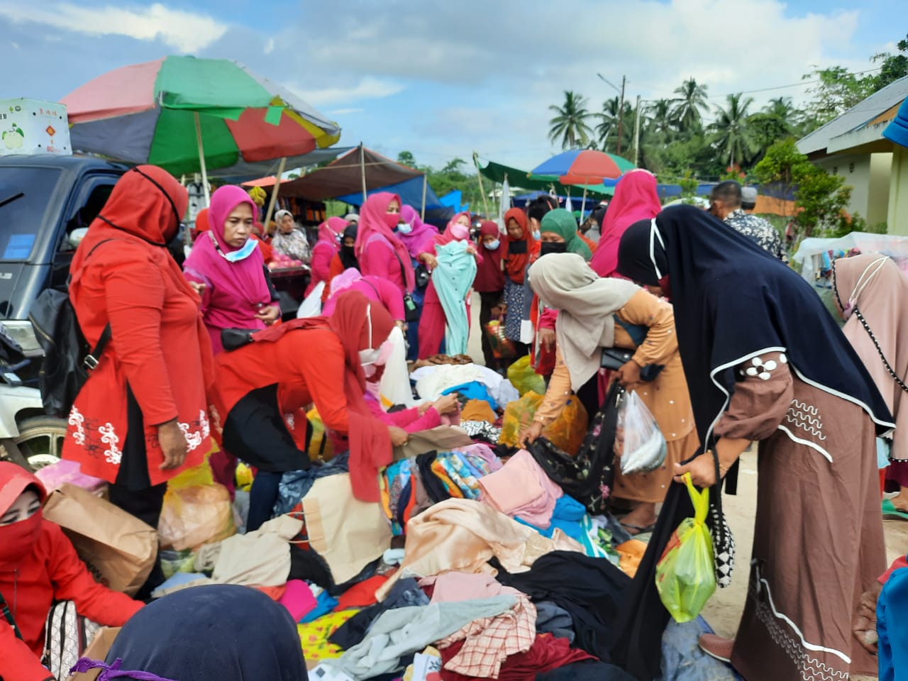 BALIKPAPAN, Inibalikpapan.com — Ikatan Wanita Sulawesi Selatan Bersatu (IWSS Bersatu) menggelar pasar murah baju, sepatu dan sandal layaknya jual di kawasan Gunung Tembak, Balikpapan Timur, Jumat pagi (30/04/2021).