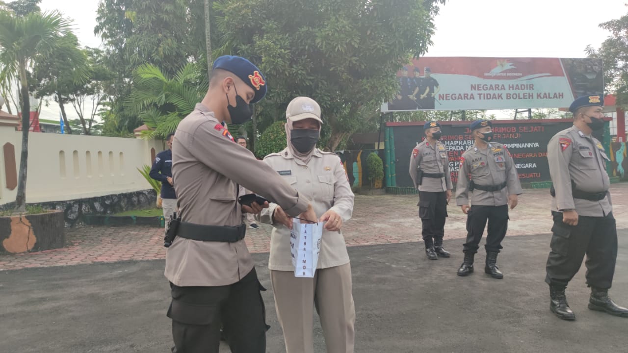 BALIKPAPAN,Inibalikpapan.com —Di masa pandemi ini, Personil Staff Satbrimob Polda Kaltim ikut melaksanakan kegiatan gerak Infaq 2000, Kamis (17/02/2022).