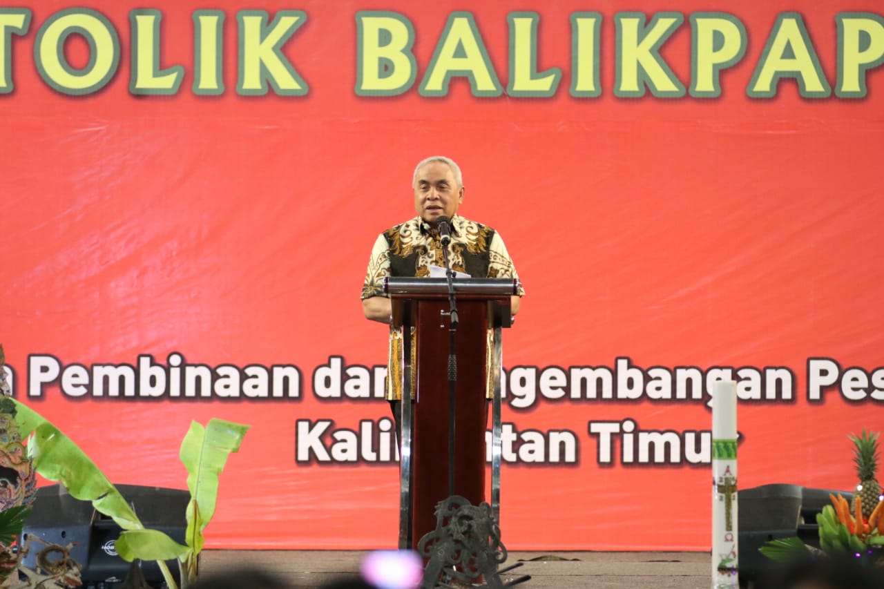 Kehadiran Isran Noor ini, sekaligus melantik pengurus Lembaga Pembinaan dan Pengembangan Pesparani Katolik (LP3K) Daerah.