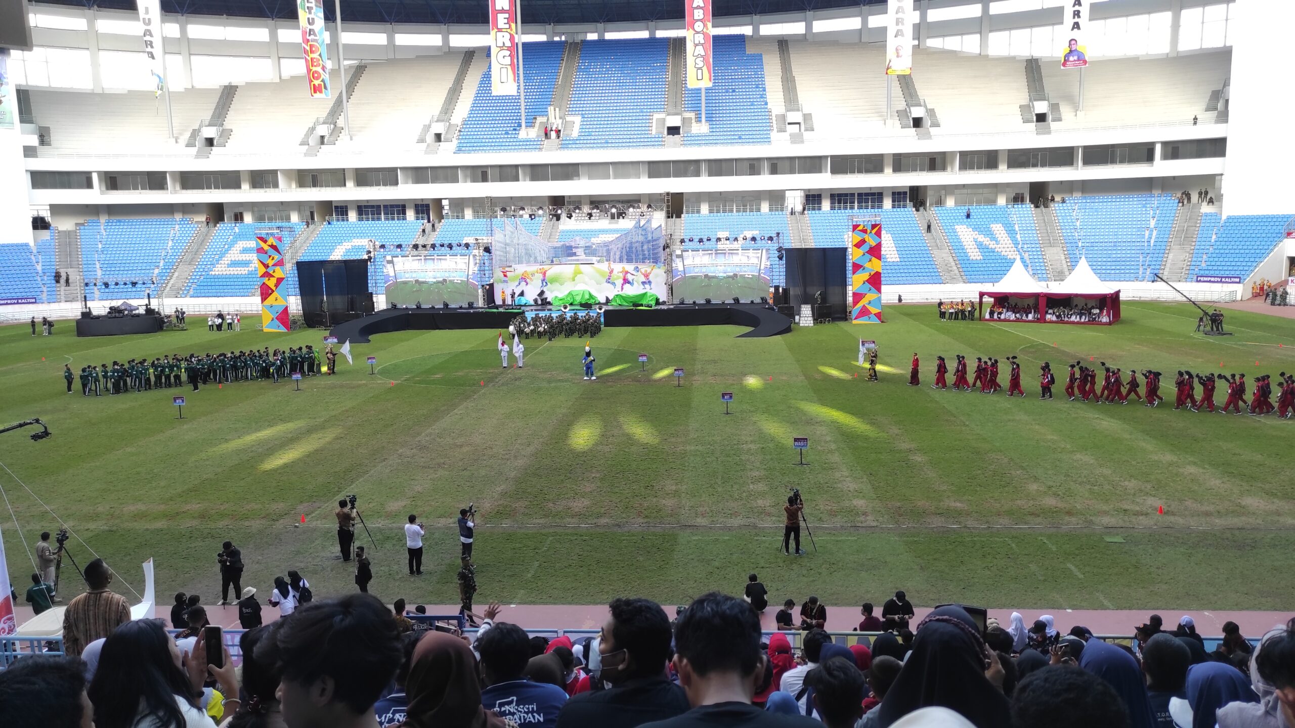 Sementara penonton yang masuk ke stadion Batakan diarahkan di tribun Barat, Utara dan sebagian kecil tribun Selatan. Tribun Selatan banyak diisi atlet dari Pra POPNAS. Sedangkan tribun timur ditutup karena panggung acara membelakanginya.