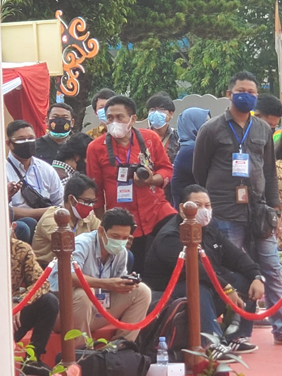 Jurnalis senior Novi Abdi juga mantan Ketua AJI Balikpapan menilai jurnalis harus bisa berkompromi agar tidak berkerumunan dengan cara bergantian mengambil momen.