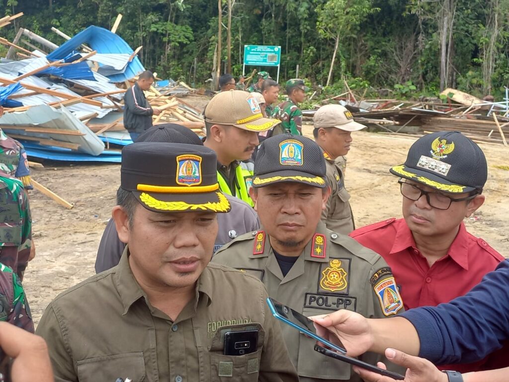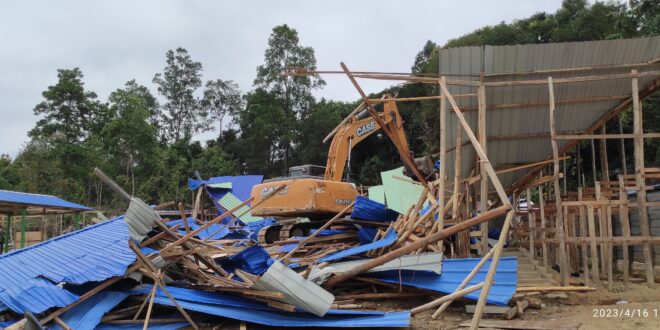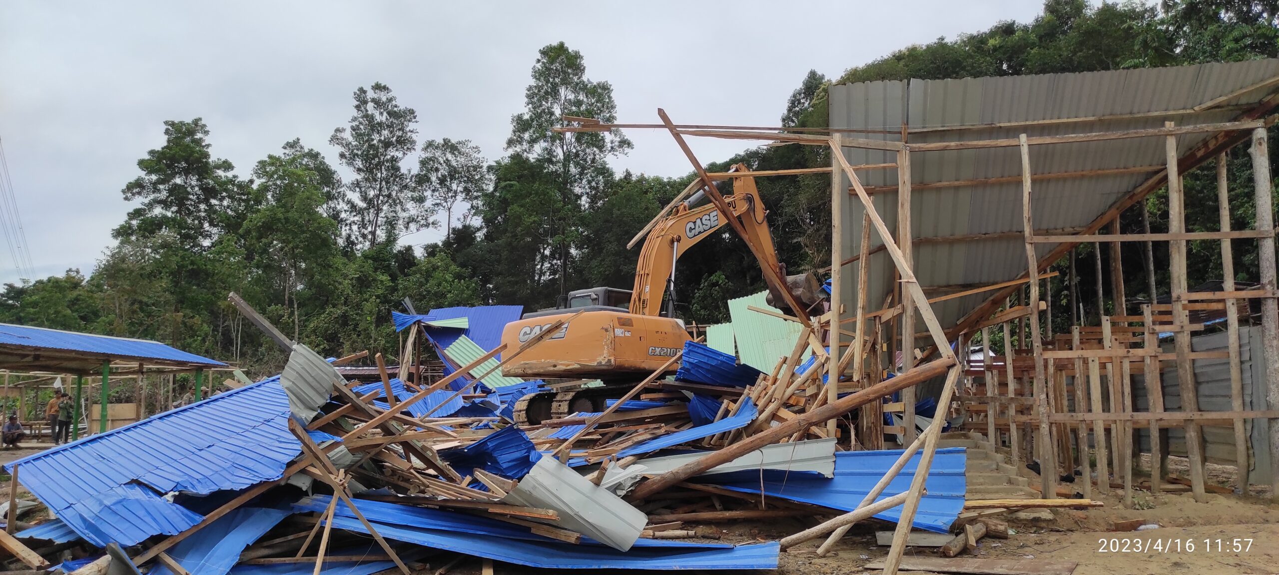 Dalam kegiatan yang dipimpin langsung Asisten I Tata Pemerintahan Zulkifli tidak membutuhkan waktu lama bagi alat berat untuk meratakan bangunan-bangunan di area perjudian sabung ayam yang rata-rata terbuat dari kayu.