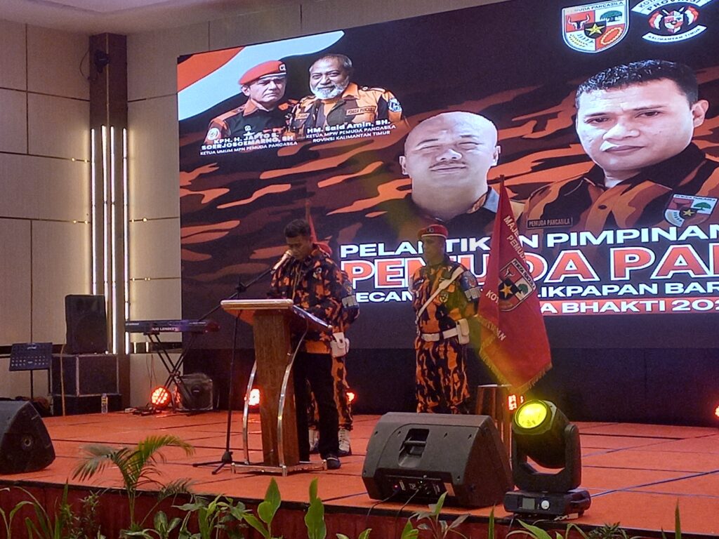 Ketua MPC Pemuda Pancasila Kota Balikpapan H. Syahril HM Taher memimpin jalannya pelantikan Ketua PAC Balikpapan Barat berserta dengan para pengurusnya.
