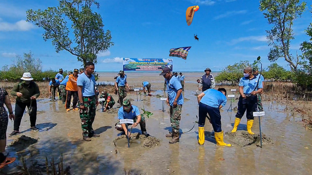Hari Bakti Ke-75 TNI AU, Lanud Dhomber Tanam Pohon Mangrove