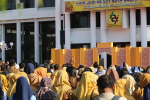 Tampak Wali Kota Balikapan Rahmad Mas’ud bersama Sekda, para Asisten dan Kepala OPD mengikuti halal bihalal bersama ratusan ASN di halaman Balai Kota, Selasa (16/4/2024).