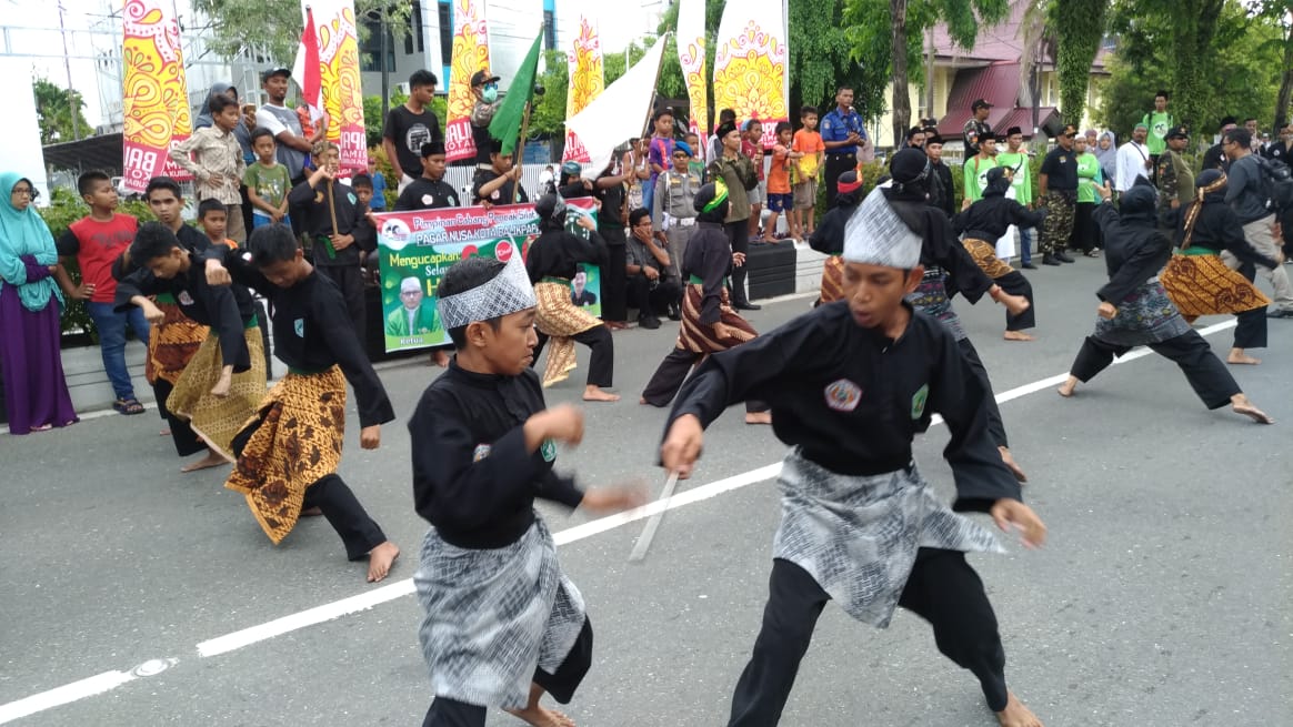 Mereka mengenakan pakaian santri dan juga menampilkan aksi bela diri pencak silat dihadapan pejabat yang hadir dan forum komunikasi pimpinan daerah, MUI, dan tokoh agama