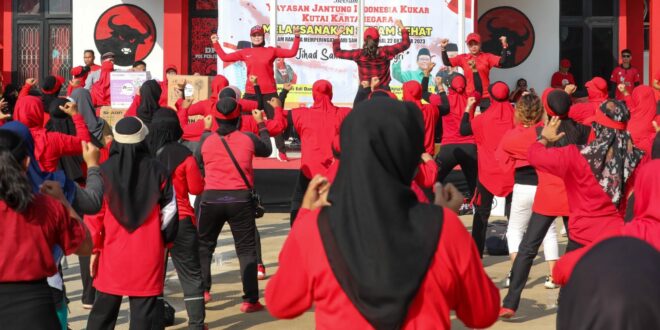 Senam bersama bekerjasama dengan Yayasan Jantung Sehat Indonesia kabupaten Kukar digelar di Kelurahan Timbau, Kecamatan Tenggarong, Kabupaten Kutai Kartanegara, Kaltim.