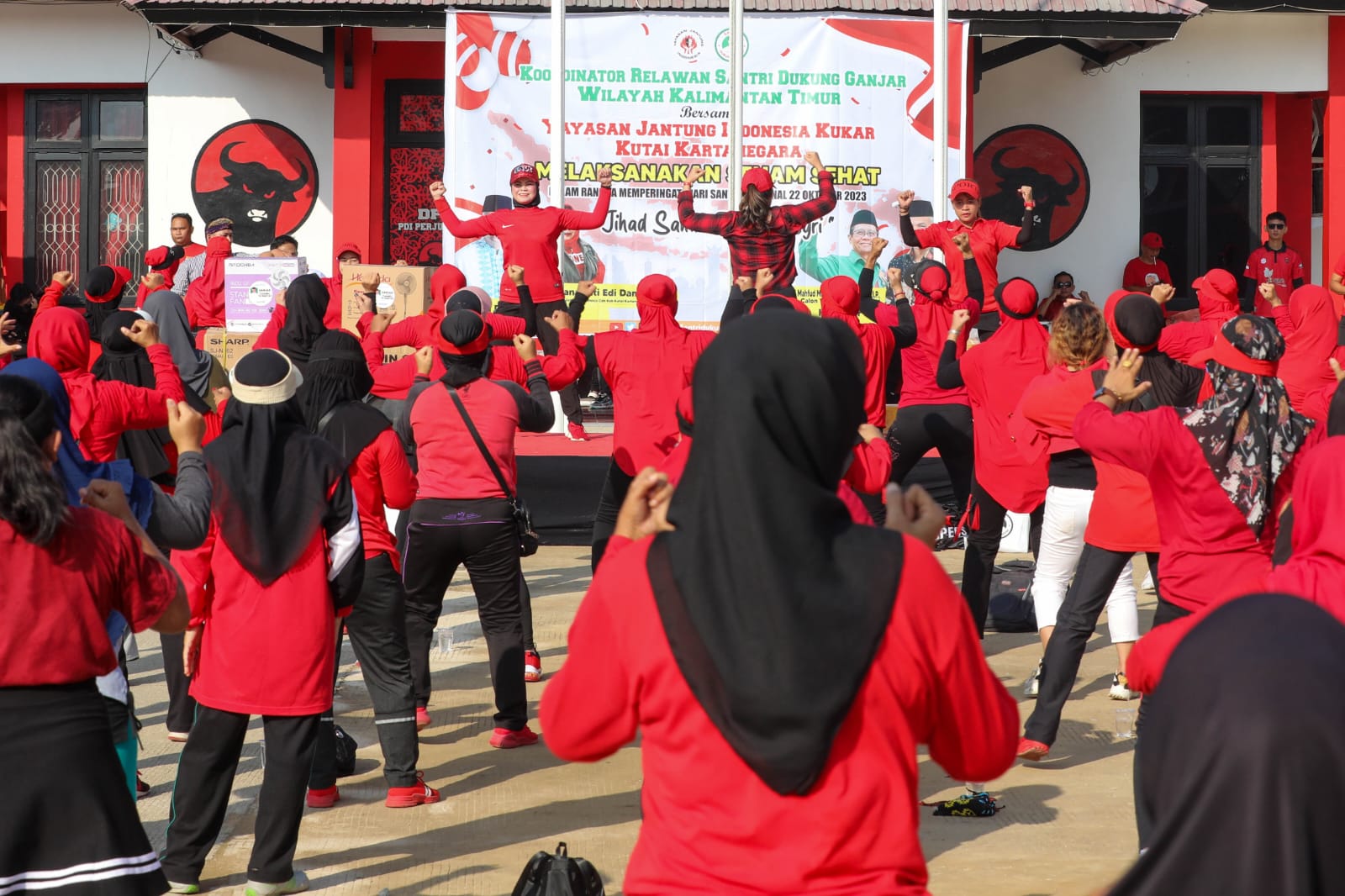 Kutai Kartanegara, Inibalikpapan.com – Banyak cara memperingati Hari Santri Nasional pada 22 Oktober kemarin. Salah satu melalui senam sehat jantung. Inilah yang dilakukan Sukarelawan Santri Dukung Ganjar (SDG) Kaltim bersama masyarakat Kukar , Minggu (22/10/2023).