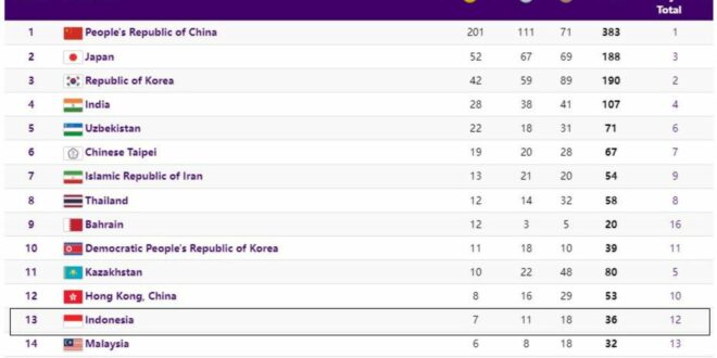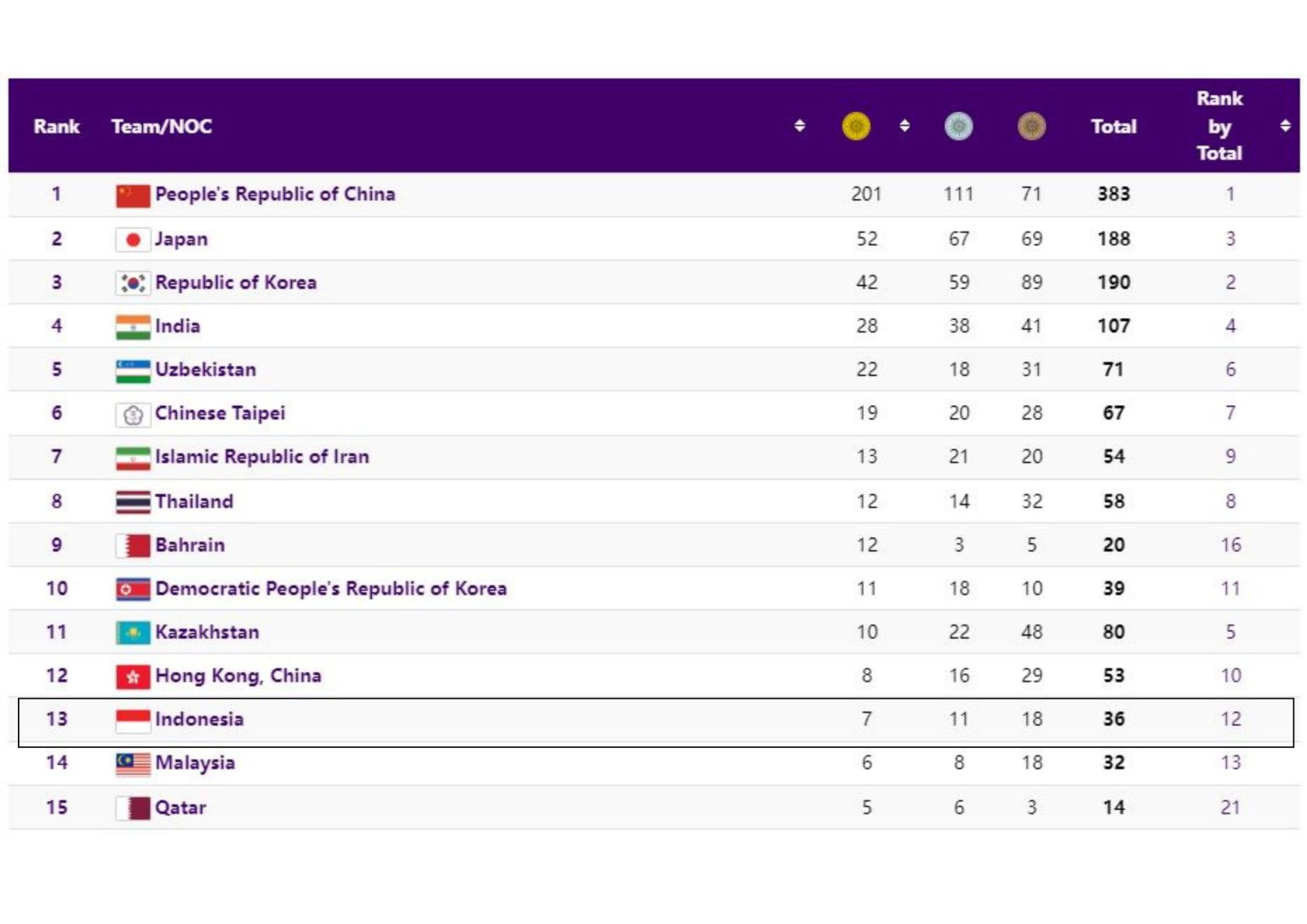 Namun peringkat akhir justru terlempar di peringkat ke-13 dengan perolehan 7 medali emas, 11 perak, dan 18 perunggu yang dibawa pulang.