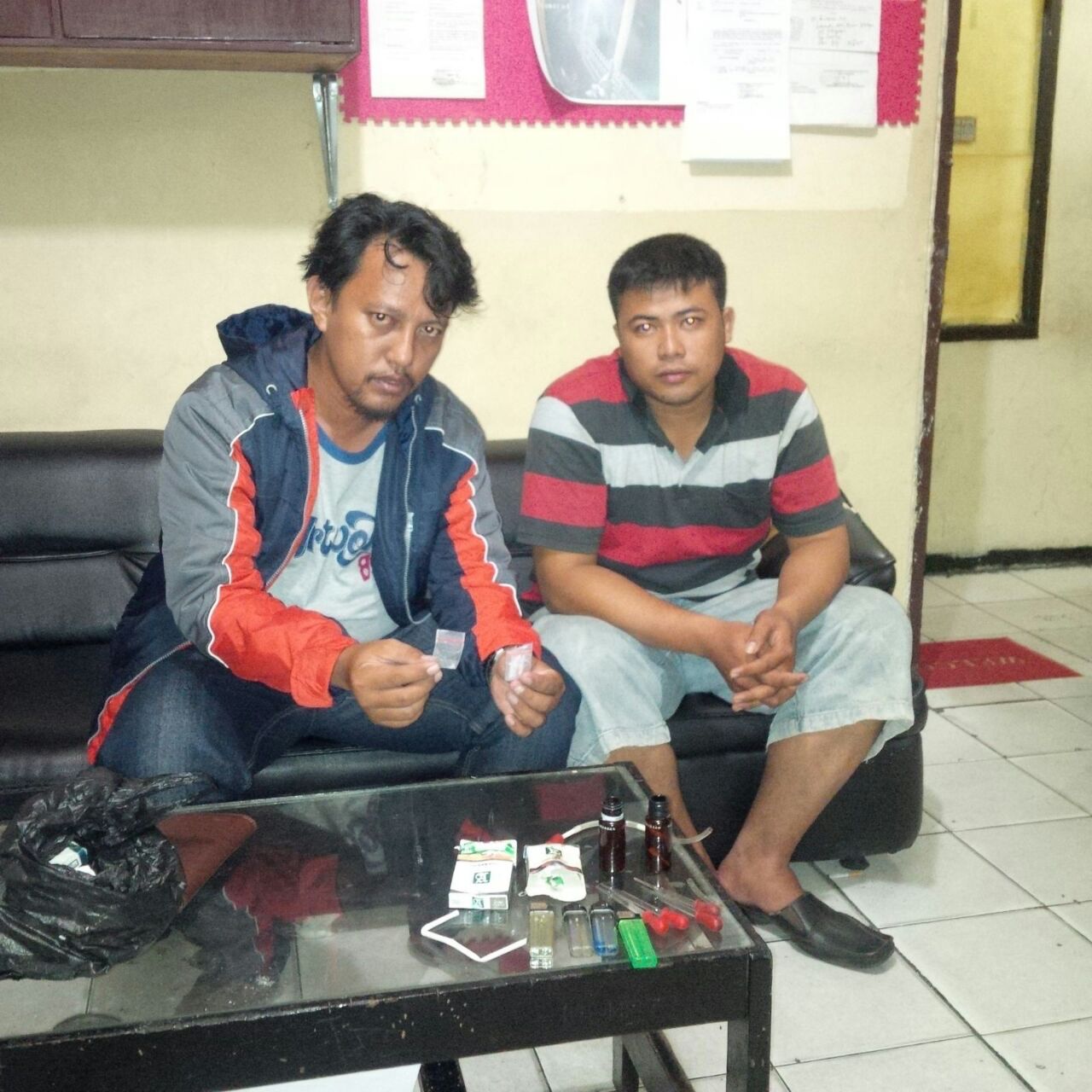 Polisi menghentikan seorang pengendara sepeda motor karena terlihat gerak-gerik mencurigakan. Petugaspun langsung melakukan pemeriksan badan, setelah itu dilanjutkan pemeriksaan di dalam Jok motor ditemukan satu unit alat hisap sabu.