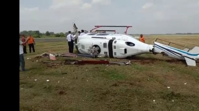 Helikopter Milik Kemenhub Terguling di Landasan Bandara Curug Tangerang