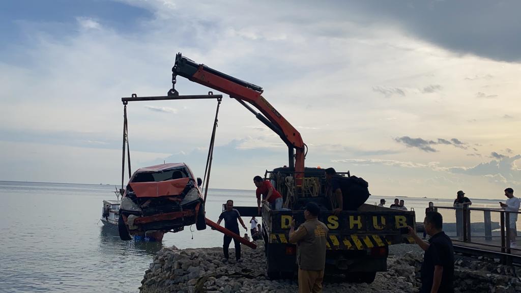 Honda Jazz yang Nyemplung di Laut Belakang Ruko Bandar Telah Diangkut