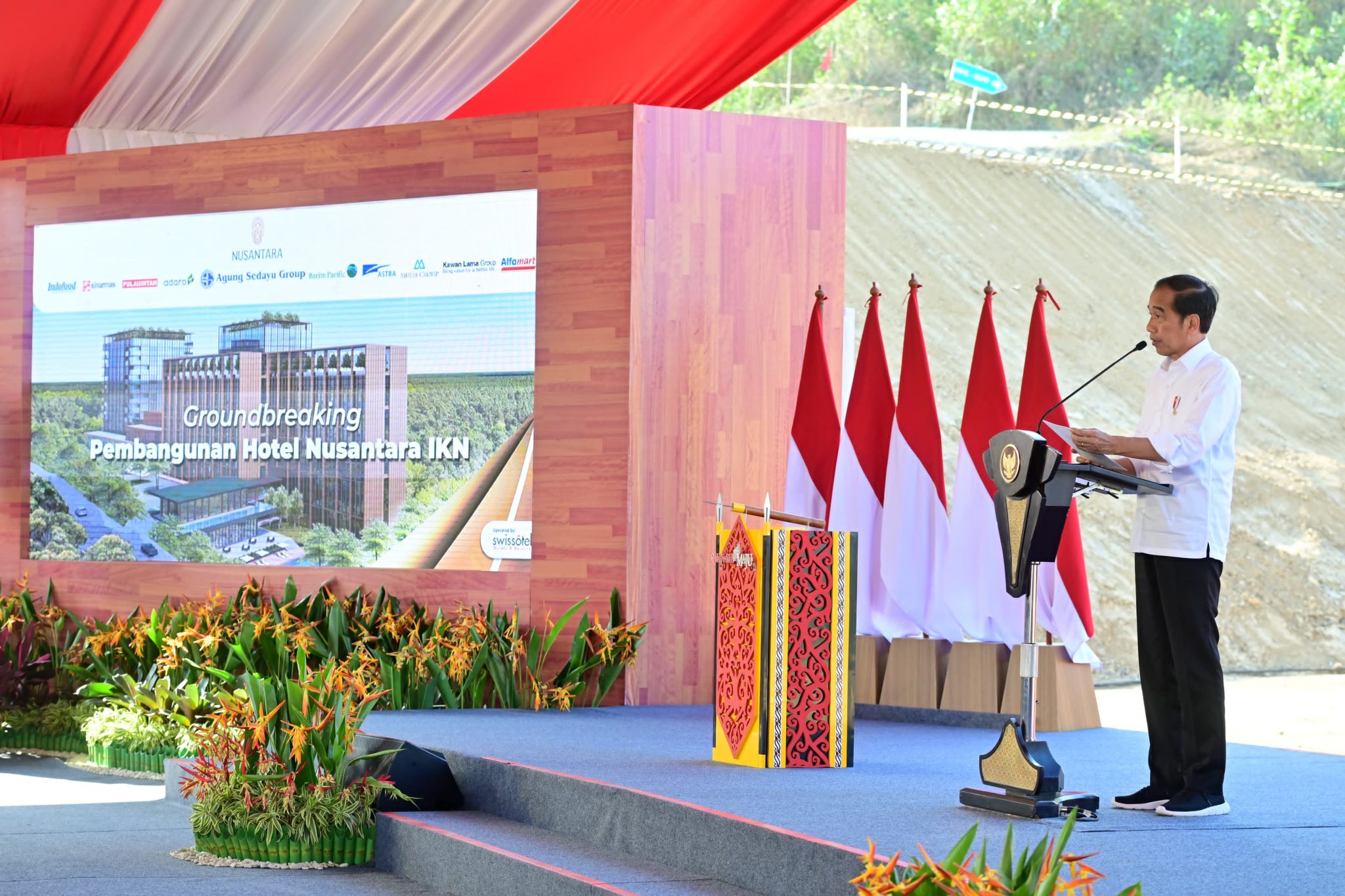 “Dengan mengucap bismillahirrahmanirrahim, pada sore hari ini Groundbreaking Hotel Nusantara, bintang lima, secara resmi saya nyatakan dimulai,” ujar Presiden dikutip darilaman Setneg.