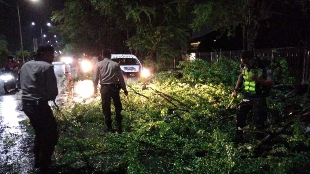 Sementara itu, dari minggu malam hingga Senin (4/7/2022) petugas BPBD, dibantu Dishub, DLH, Kepolisian, dan para relawan membantu melakukan proses evakuasi terhadap pohon-pohon yang tumbang dan beberapa wilayah yang terendam banjir.