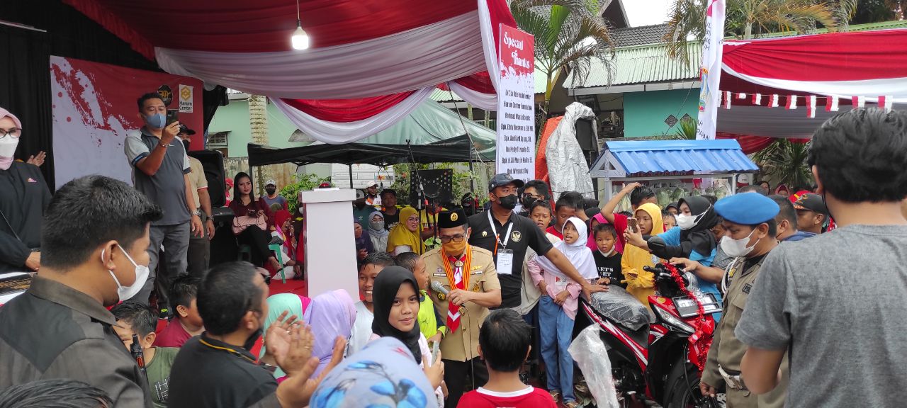 ” Sebutkan dua pahlawan kemerdekaan. Ayo seperti Cut Nyak Dien dan Kartini,” tanya Rahmad Mas’ud yang meminta warga tidak memberitahu jawaban.