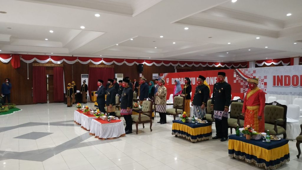 Sementara Wakil Wali Kota Balikpapan Rahmad Mas’ud bersama Sekda, Wakil Ketua DPRD Thohari Aziz, Kepala OPD mengikutinya upacara Kemerdekaan secara Virtual di aula pemkot Balikpapan sejak pukul 10.35 wita.