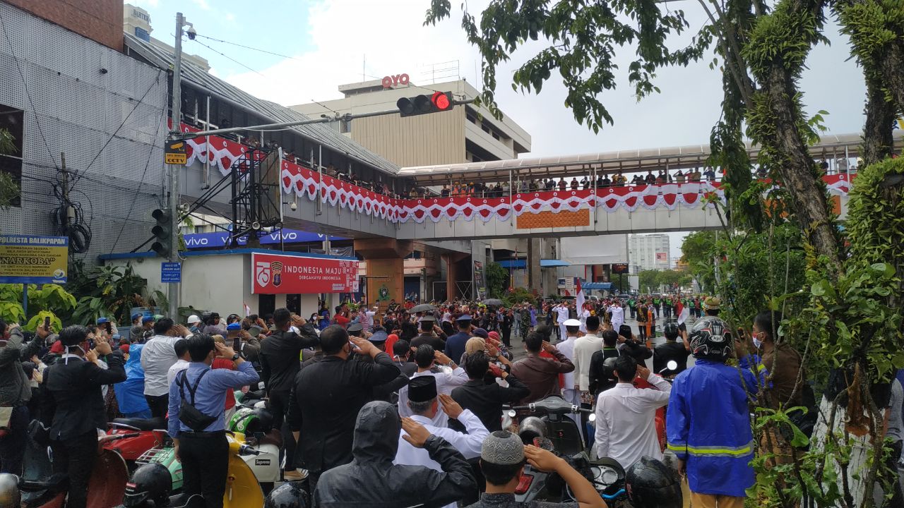 BALIKPAPAN, Inibalikpapan.com— Pelaksanaan sikap hormat detik-detik pengibaran bendera merah putih kemerdekaan RI di simpang Balikpapan Plaza pukul 11.17 wita berlangsung khidmat dan antusias diikuti warga Balikpapan yang melintas.