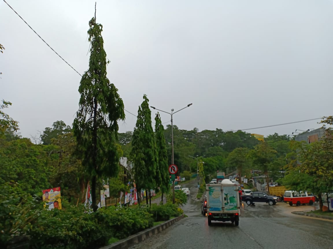 Tepatnya di turunan Manda dan depan kantor Dinas Sosial. Akibatnya genangan air banyak kendaraan roda empat jenis sedan dan roda empat memilih putar arah.
